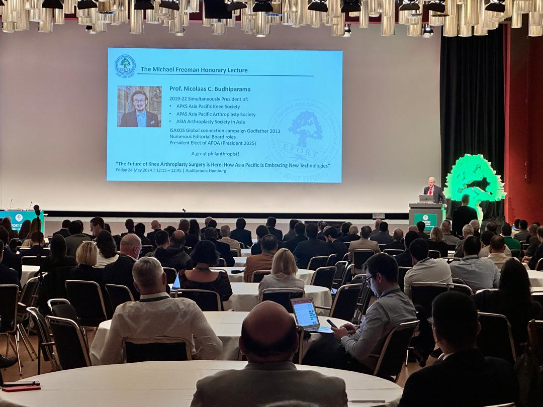 Husband of HE Adriana Sri Lestari MBA, Honorary Consul of Estonia Jakarta Prof. Dr. Nicolaas C Budhiparama , MD, PhD. received  award from EFORT, European Federation of National Association of Orthopaedics and Traumatology in Hamburg, Germany. May 24, 2024.