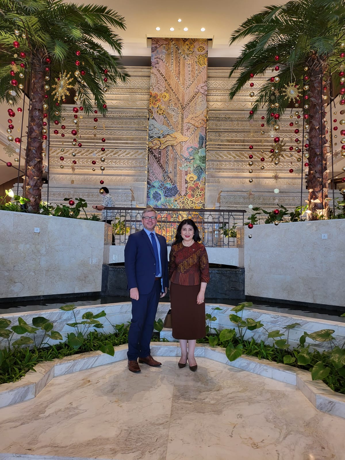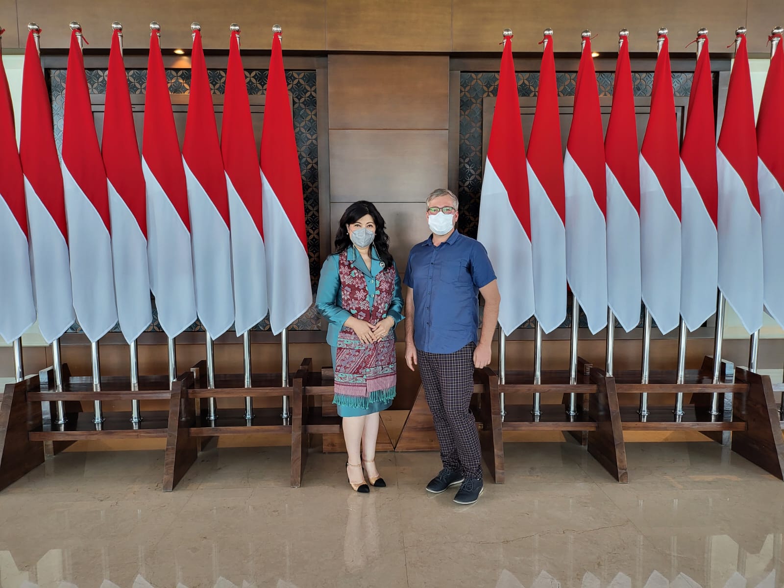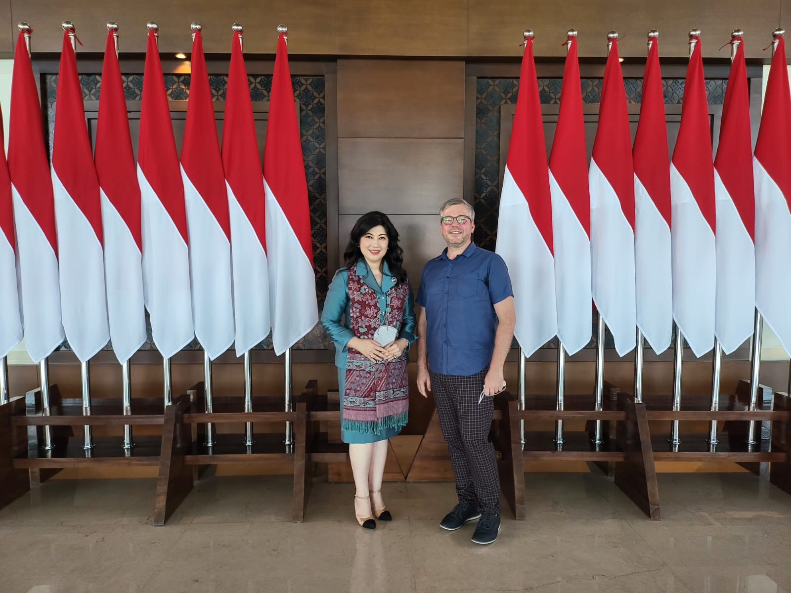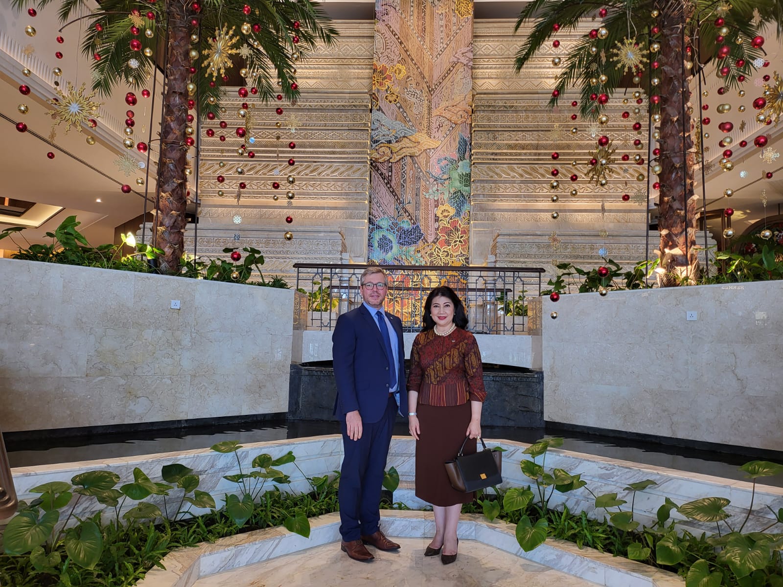 The official visit of the Estonian Ambassador to Indonesia H.E. Mr. Priit Truk in order to submit a letter of credence to the President of the Republic of Indonesia H.E. Mr. Joko Widodo at the Merdeka Palace in Jakarta was welcomed by the Honorary Consul of Estonia, Ir. Adriana Sri Lestari MBA.